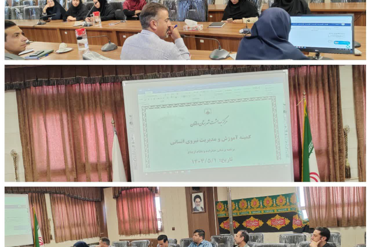برگزاری کمیته آموزش و مدیریت نیروی انسانی برنامه پزشک خانواده و نظام ارجاع به ریاست دکتر کیهانی سرپرست معاونت بهداشتی و اعضای کمیته در محل سالن اجتماعات