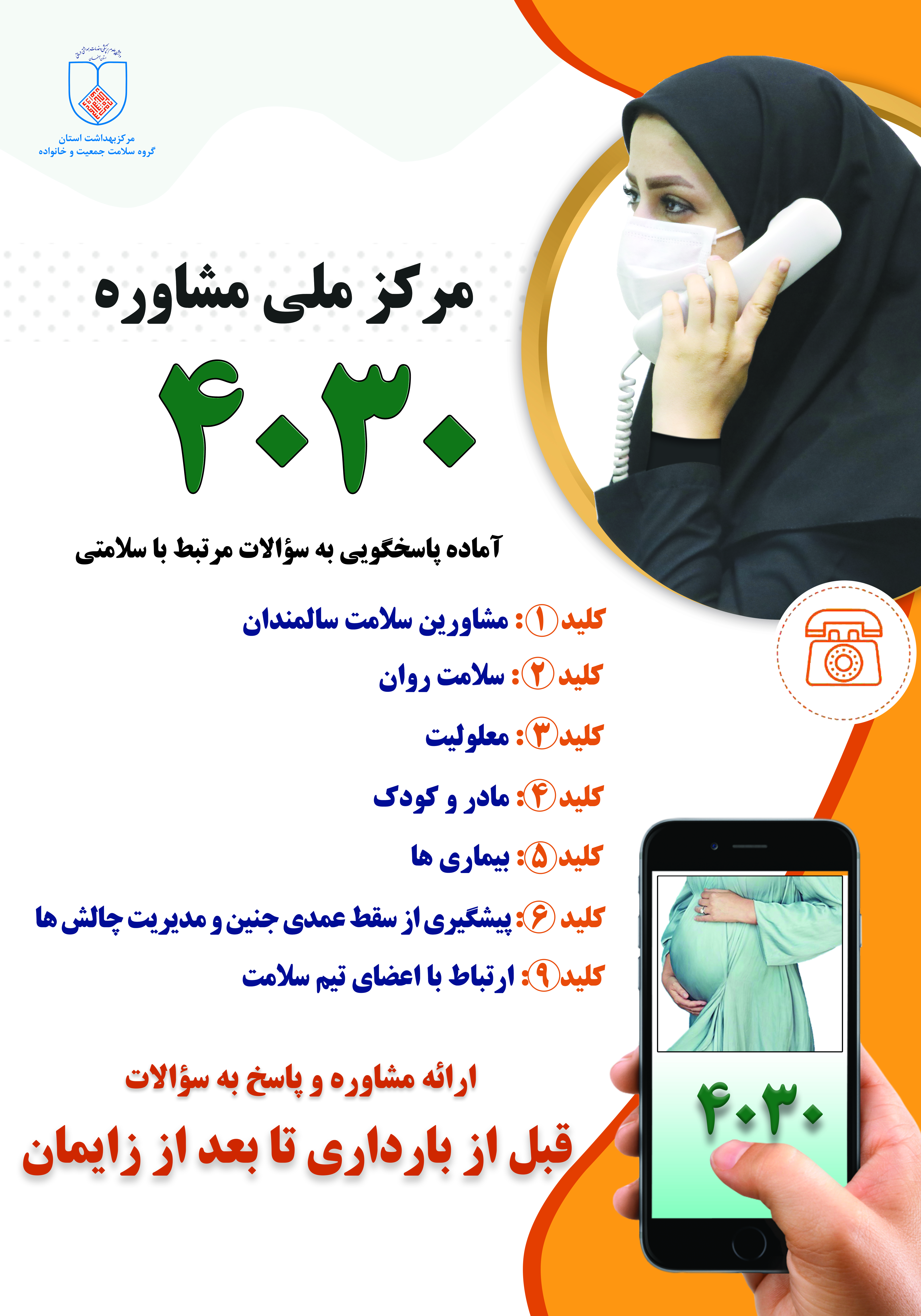 سامانه مشاوره تلفنی 4030 آماده پاسخگویی به سوالات شما در حوزه های مختلف سلامت